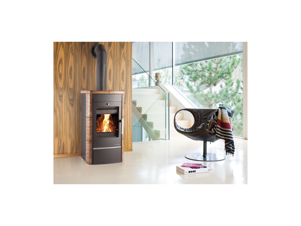 Krbová kamna Haas+Sohn ALYTUS s korpusem v antracitové barvě doplněná kachlovým obkladem v barvě havana na bocích i víku, najdou své uplatnění v moderních novostavbách i stávající zástavbě. Kamna spojují moderní design s kachlovou klasikou, který zapadne do každého interiéru.