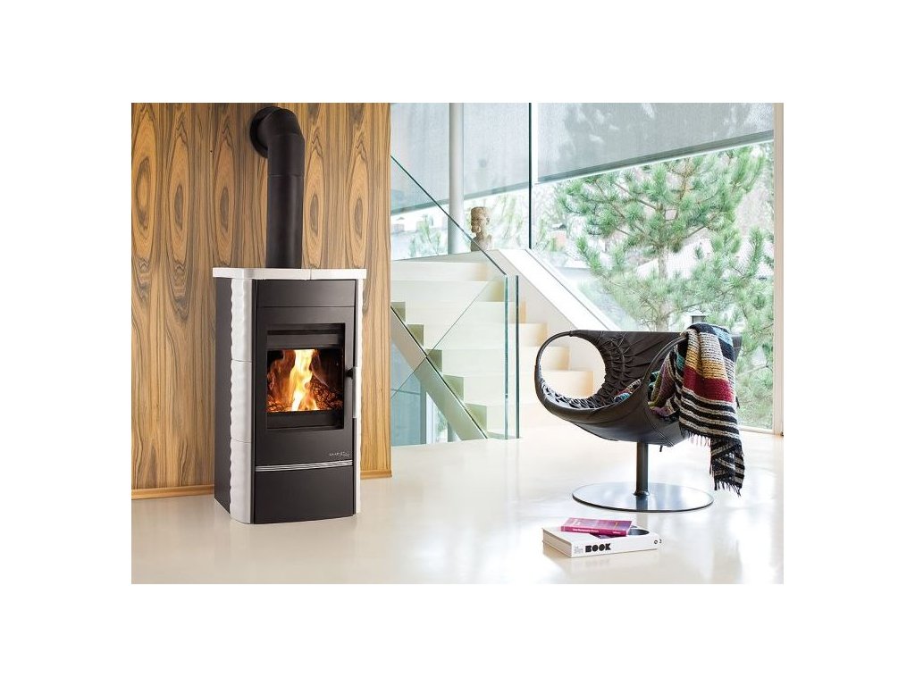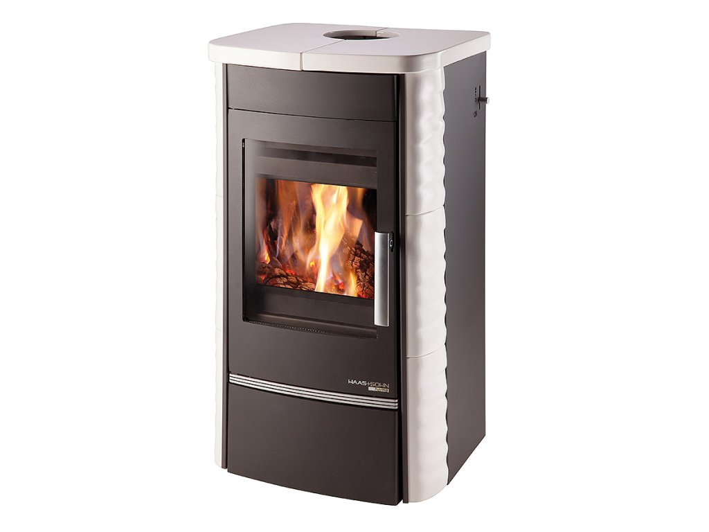 Krbová kamna Haas+Sohn ALYTUS s korpusem v černé barvě doplněná kachlovým obkladem v bílé barvě na bocích i víku, najdou své uplatnění v moderních novostavbách i stávající zástavbě. Kamna spojují moderní design s kachlovou klasikou, který zapadne do každého interiéru.