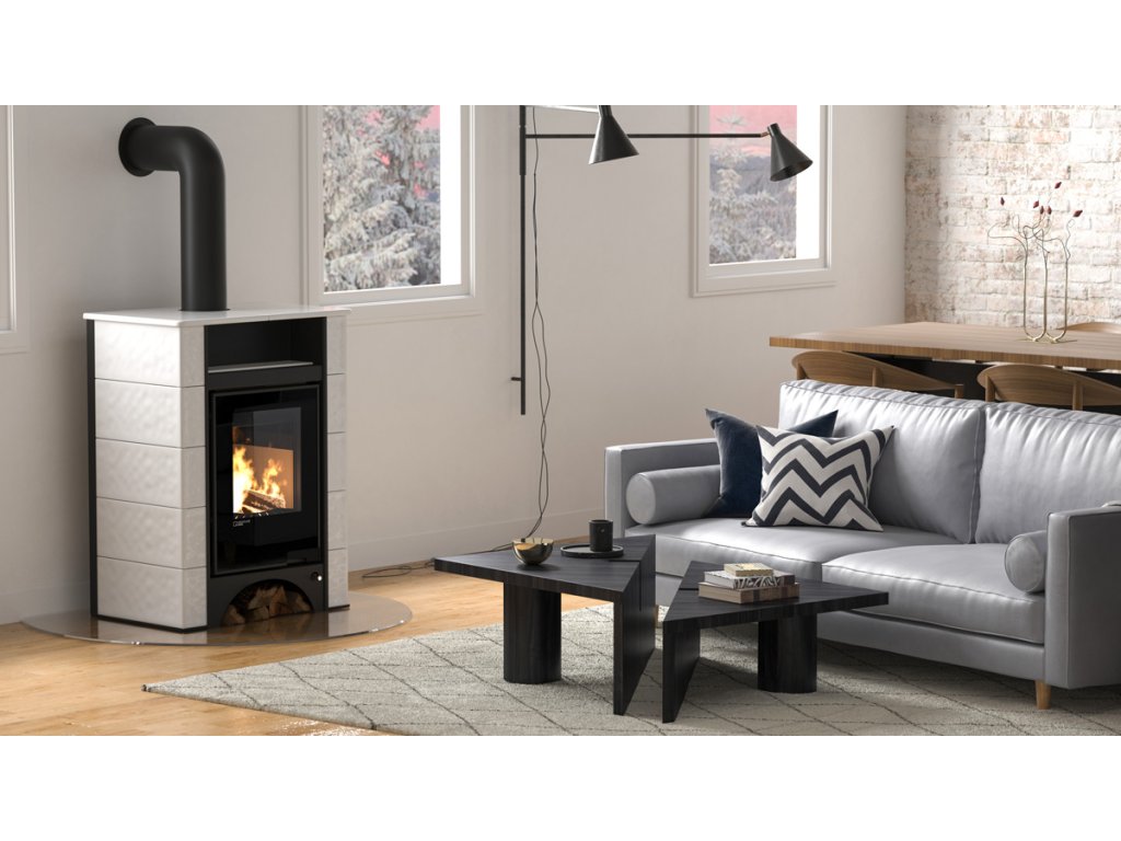 Kachlová kamna AQUAFLAM VARIO PERU 11kW, kachle bílá (teplovzdušná verze)