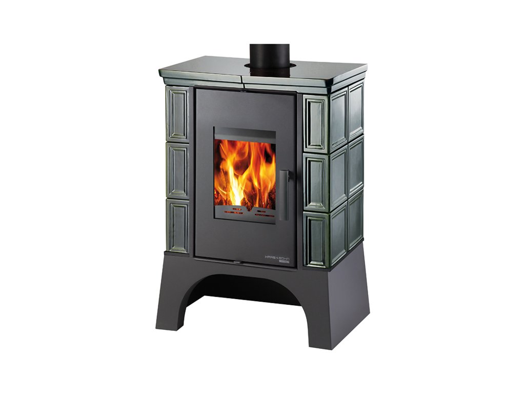 Kachlová kamna EBOLI AL II s výměníkem, zelená, černý podstavec