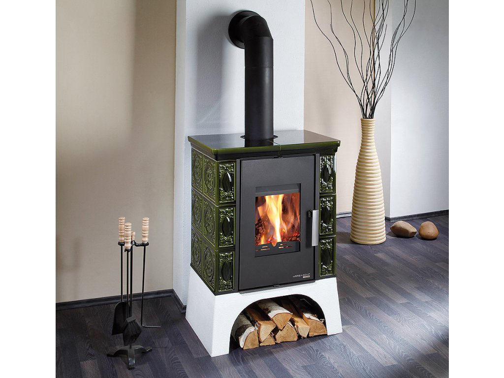 Krbová kamna Haas+Sohn EMPOLI AL II v černém provedení s kachlovým obkladem v zelené barvě najdou své uplatnění v novostavbách i stávající zástavbě. Kamna spojují nadčasový design s tradičním kachlovým obložením v klasickém dekoru, který zapadne do každého interiéru.