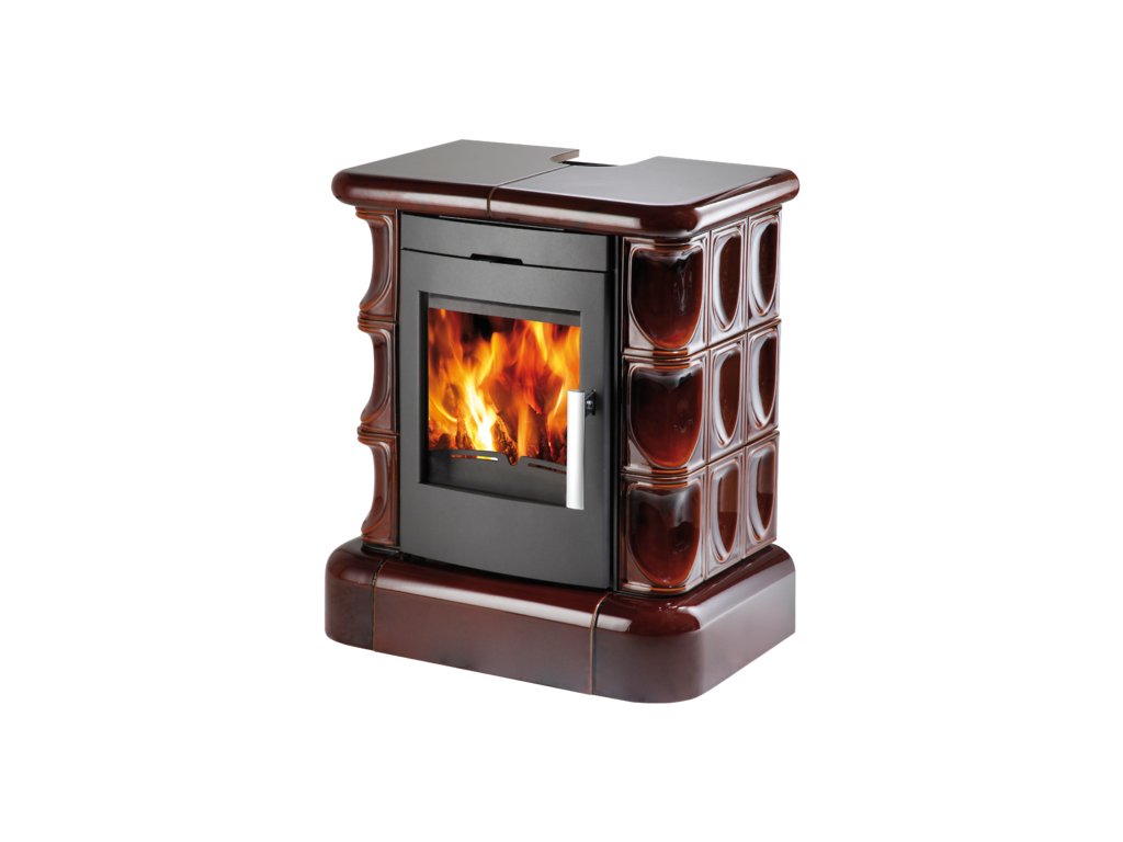 Kachlová kamna MANTA, hnědá kachle, kachlový top+sokl