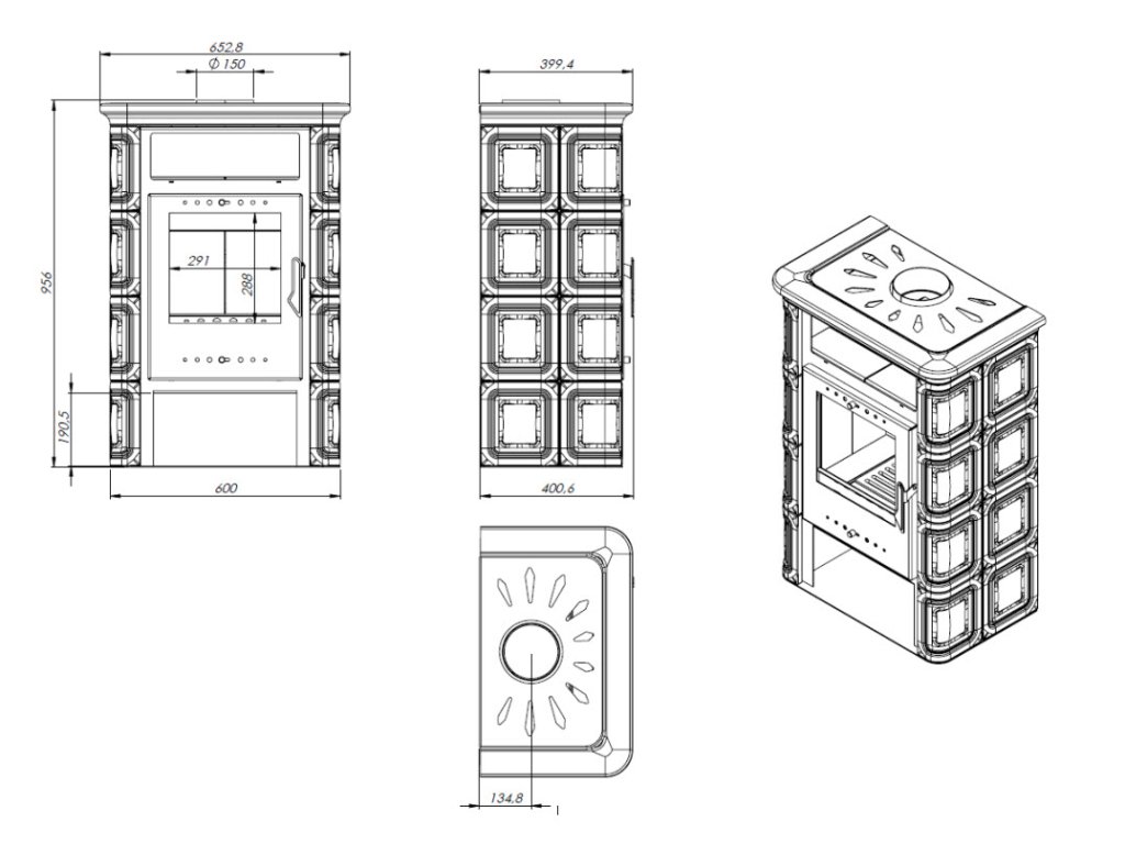 | Plášť kamen: | kachle, ocelový plech |
