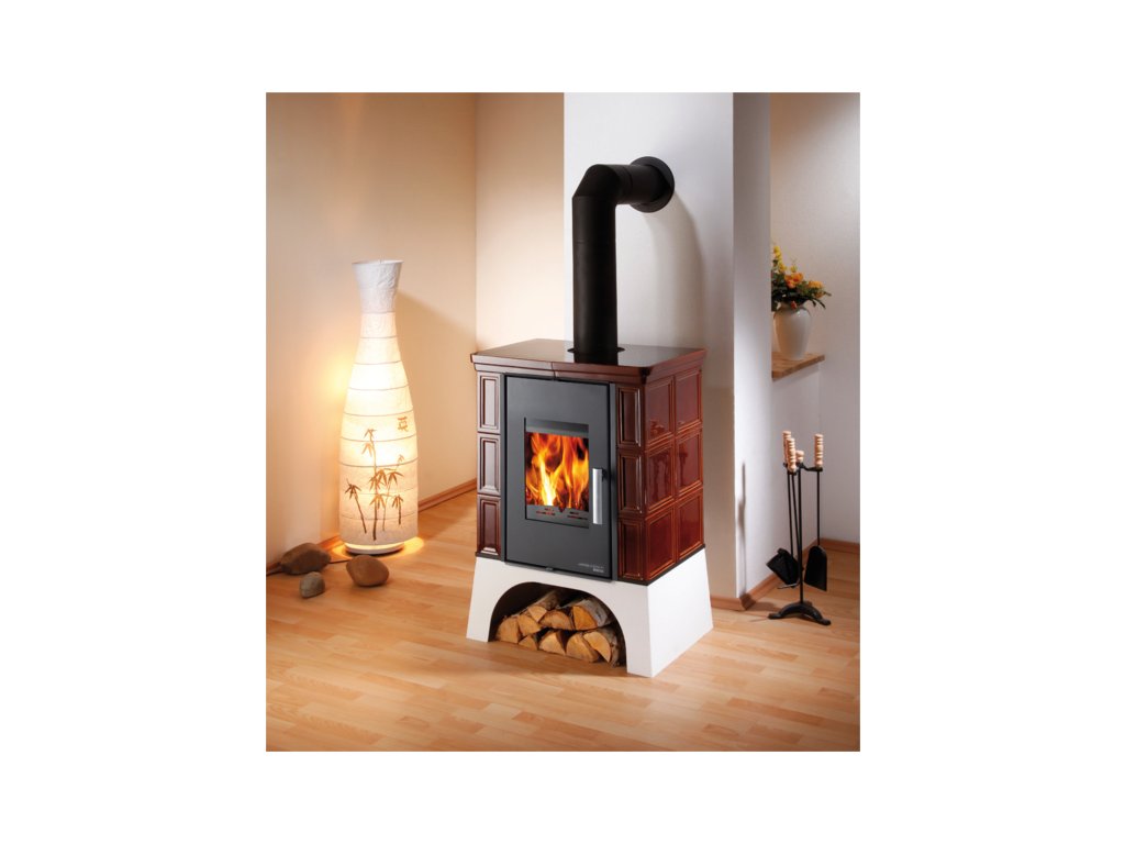 Kachlová kamna s výměníkem EBOLI AL II, hnědá kachle, vychlazovací smyčka