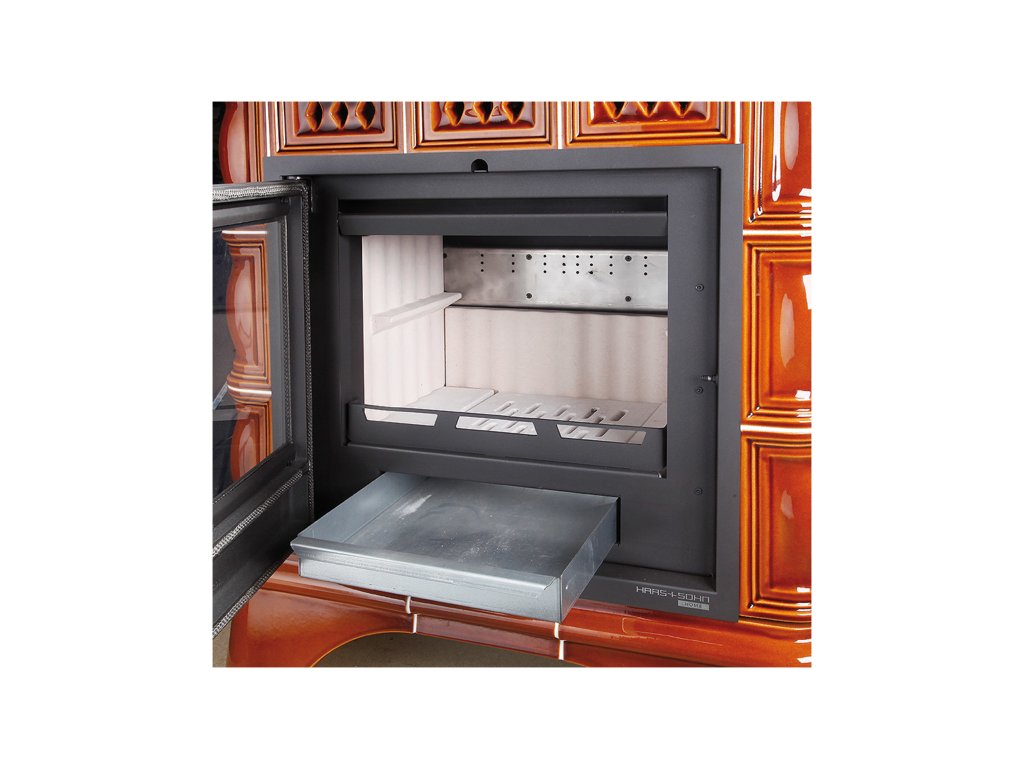 Kamna Matera se vyrábí v provedení s obkladem z kachlí v bílé barvě - slonová kost, nebo v barevném provedení s hnědým obkladem - medovník. Velké topeniště je vyloženo žárobetonovým roštem, který má vyšší životnost a zajišťuje také lepší parametry spalování. Přikládat můžete polena až 50 cm dlouhá. Díky kachlovému obkladu bude teplo z kamen sálat ještě dlouho po vyhasnutí ohně.