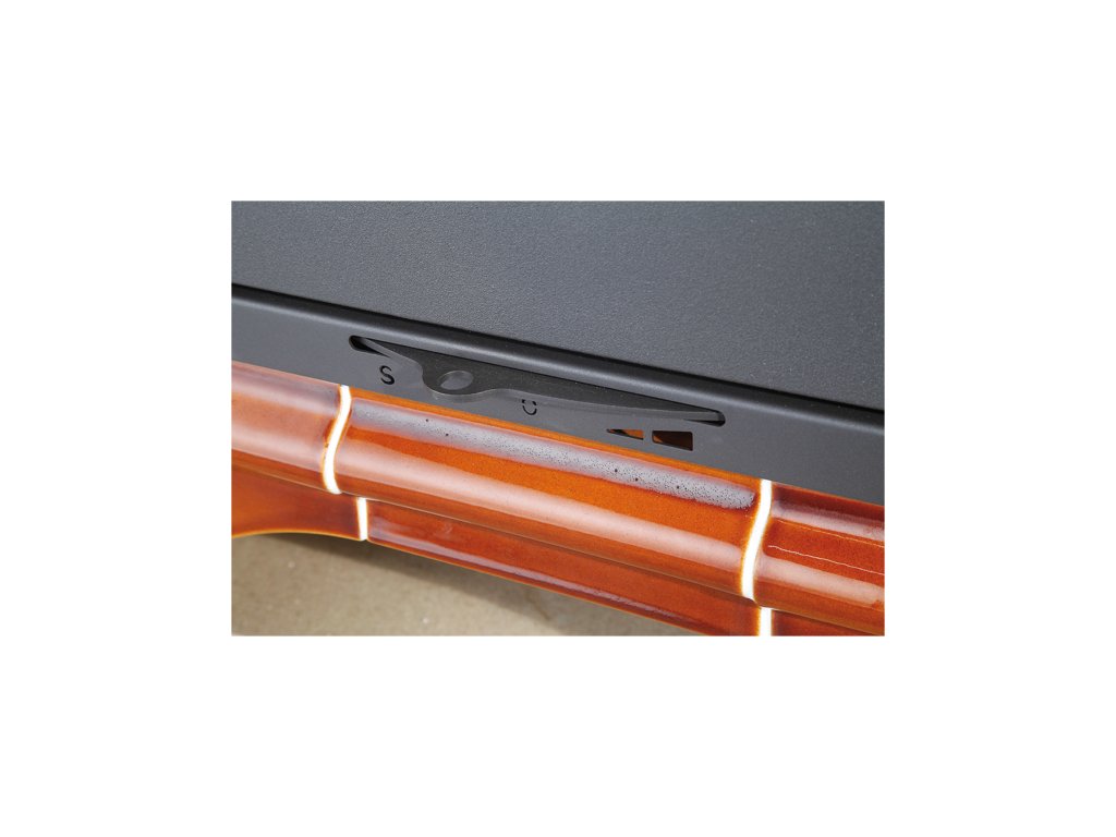 Pro docílení efektivního spalování a tím pádem i ušetření nákladů na topení jsou tato kamna opatřena funkcí Easy control, která se stará o komfortní ovládání ze všech tří přívodů vzduchu. Díky regulátoru pod spalovací komorou tak budete schopni jednoduše korigovat přívod vzduchu v různých fázích topení tak, aby docházelo k co nejefektivnějšímu spalování.