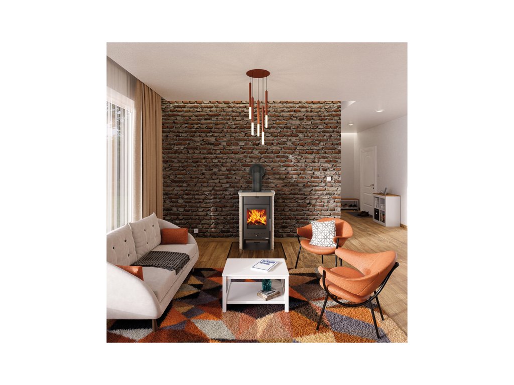 Pohled na plápolající oheň doplňuje elegantní prosklení dvířek, které vytváří kouzelnou atmosféru a zároveň umožňuje dokonalý přehled o plameni. Výrobce doporučuje jako palivo kvalitní suché dřevo nebo dřevěné brikety, čímž se dosahuje efektivní spalování i dlouhodobý tepelný výkon.