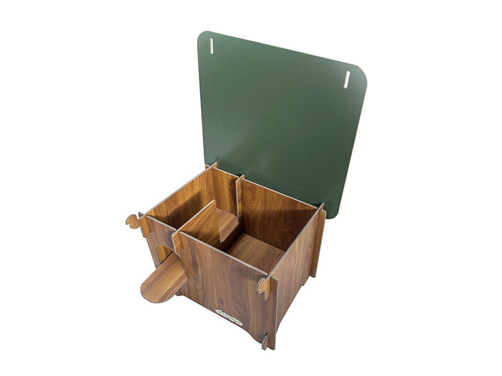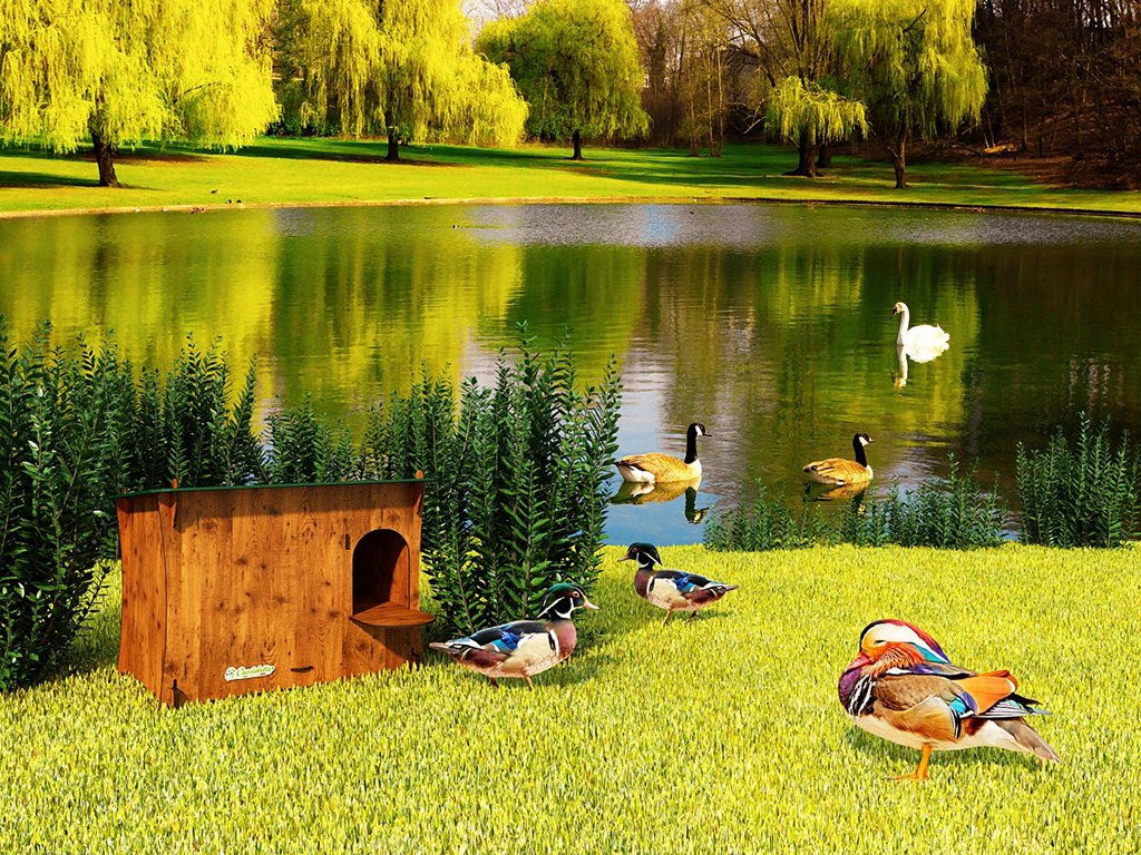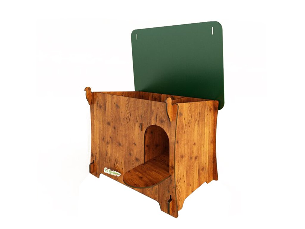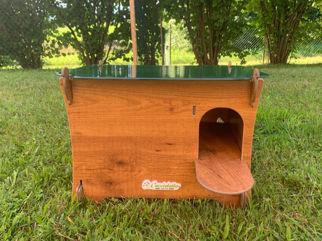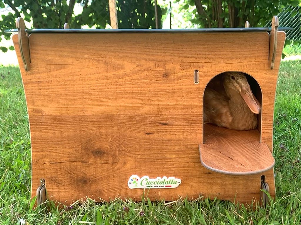 Domeček pro kachny DUCKY S s rozměry 60 x 46 x 44 cm. Jedná se o velmi pohodlný domek, který má otvírací střechu pro snadné čištění. Domeček pro kachny vyrobený z vysoce odolného HPL laminátu poskytuje vynikající tepelné i hygienické vlastnosti.