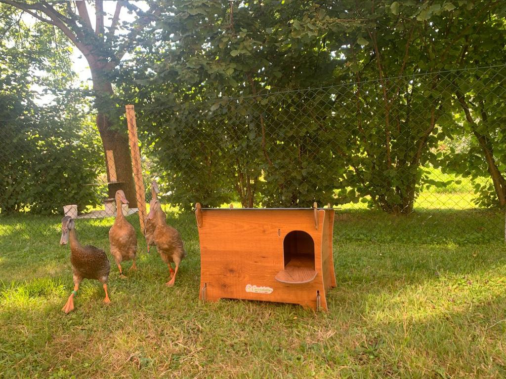 Vnější rozměry celého domu jsou 60 x 46 x 44 cm. Vnitřní prostory domečku pro kachny jsou 48 x 32 cm, a proto je domeček ideální pro dva indické běžce.