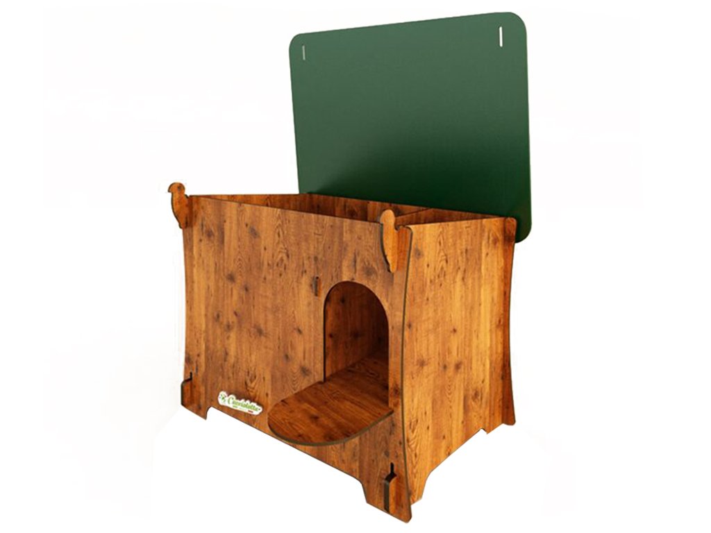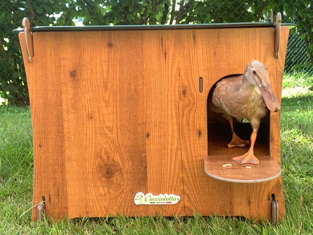 Domeček pro kachny DUCKY M s rozměry 70 x 56 x 54 cm. Jedná se o velmi pohodlný domek, který má otevírací střechu pro snadné čištění. Domeček pro kachny vyrobený z vysoce odolného HPL laminátu poskytuje vynikající tepelné i hygienické vlastnosti.