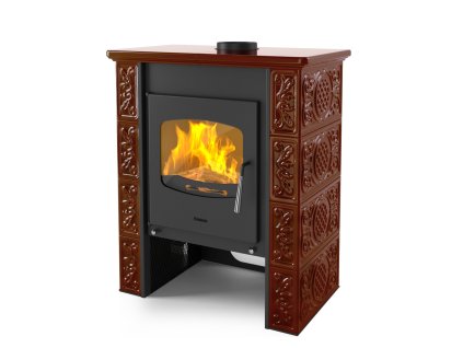 Kachlový sporák na tuhá paliva PRITY 1P34-K MARO s elegantním hnědým kachlovým...