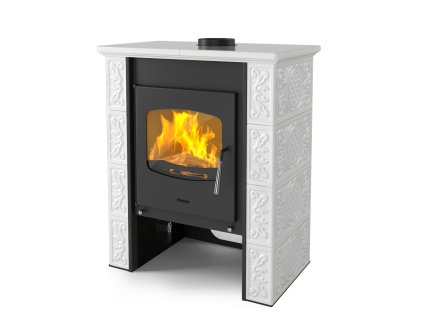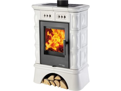 Kachlový sporák na tuhá paliva PRITY 1P34-K ALBA s elegantním bílým kachlovým obložením...
