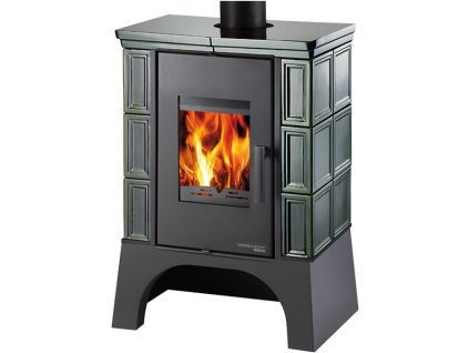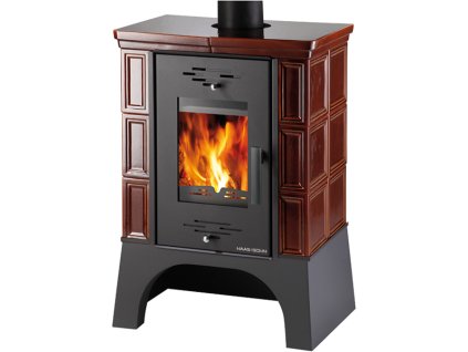 Kamna Haas+Sohn MANTA s výkonem 7 kW s kachlovým obkladem a víkem v hnědé barvě....