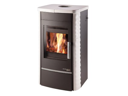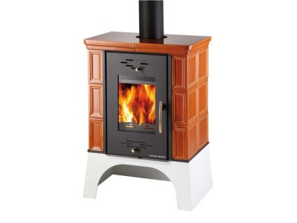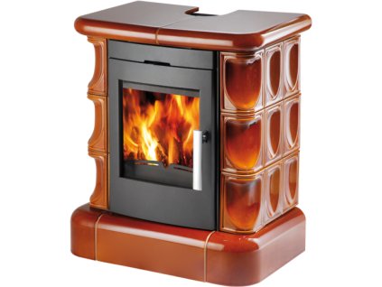 Kamna Haas+Sohn MANTA s výkonem 7 kW s kachlovým obkladem a víkem v hnědé barvě....