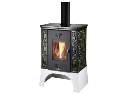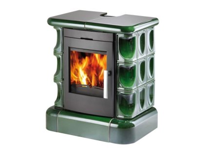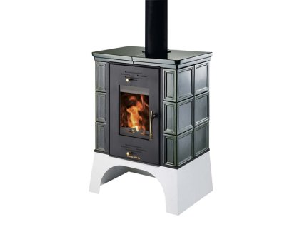Krbová kamna s výměníkem TREVISO II kachlový sokl, černá/zelená kachle
