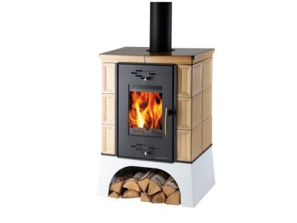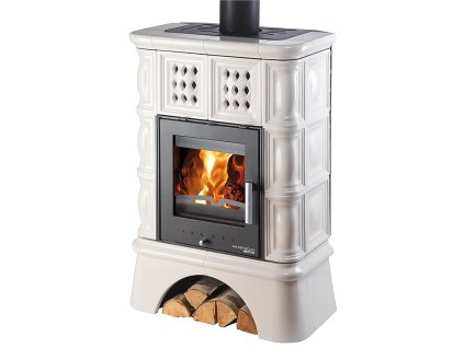 Krbová kamna s výměníkem TREVISO II kachlový sokl, černá/kachle slonová kost