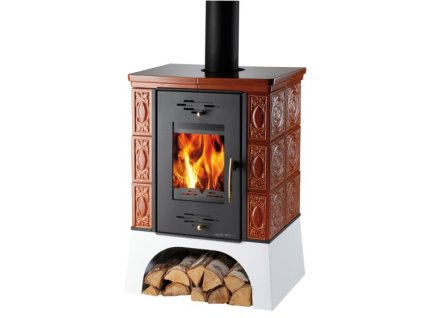 Krbová kamna s výměníkem TREVISO II kachlový sokl, černá/hnědá kachle