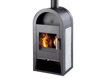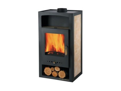 Krbová kamna s výměníkem MANTOVA AL II černá, béžová dlažba