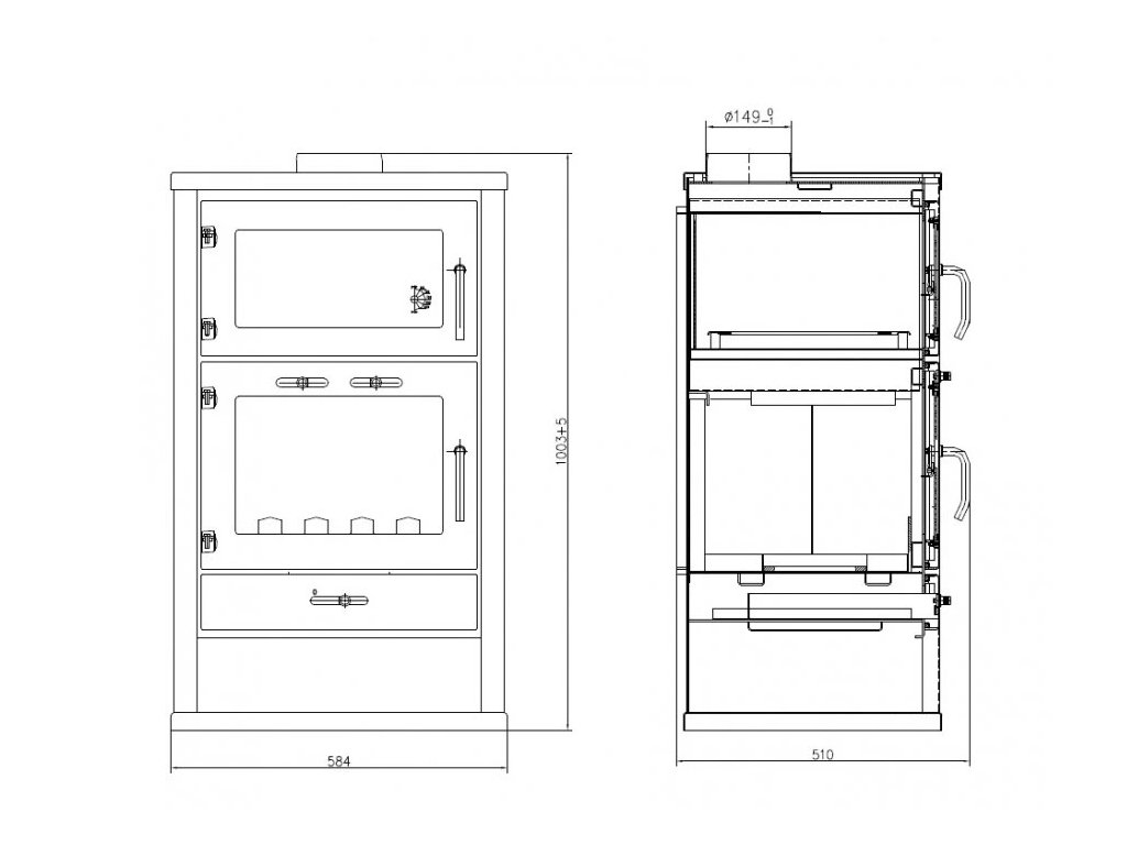 | Palivo: | dřevěné brikety, kusové dřevo |