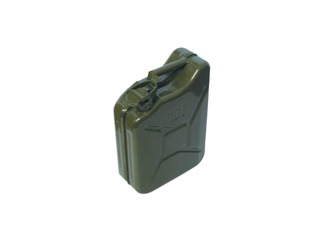 Hrdlo kanystru je opatřené uzavíratelným mechanismem se zátkou, těsněním a jištěním proti otevření. Profilované boky zajistí pevný tvar, nedochází tak k prohýbání stěn vlivem tlaku. Kanystr je na vrchní straně opatřen praktickou rukojetí usnadňující manipulaci. Povrch je tradičně zeleno-olivově nabarven, materiál je tak ochráněn před korozí.