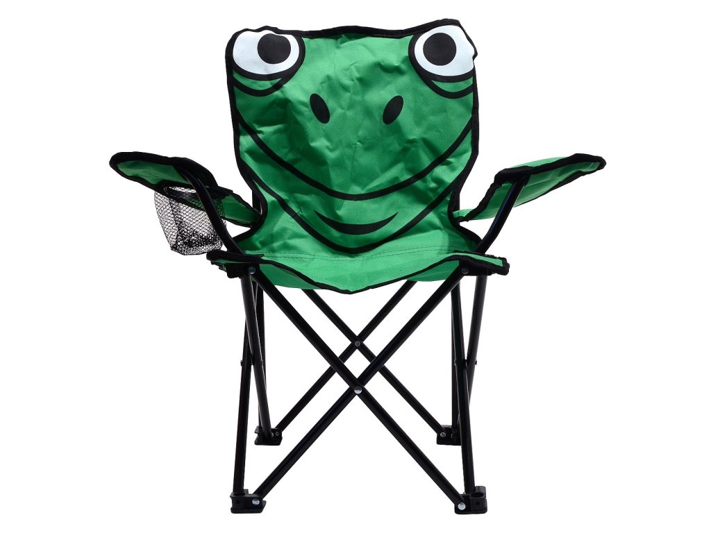 Kempingová židle Frog je skládací židle s dětským motivem a tvarem žáby.