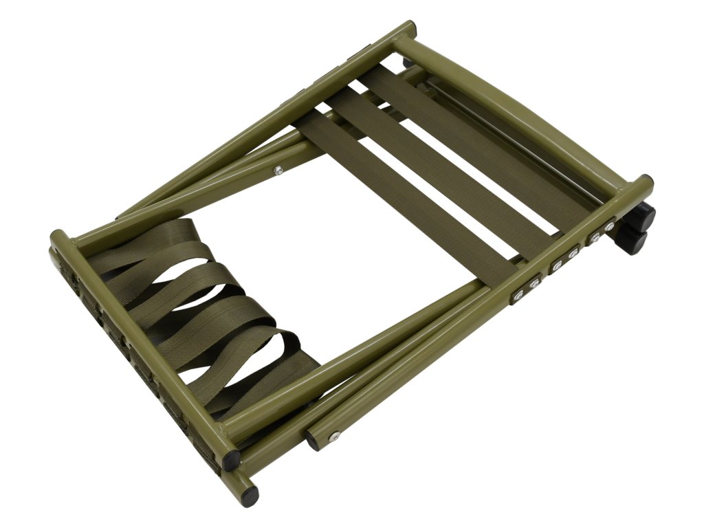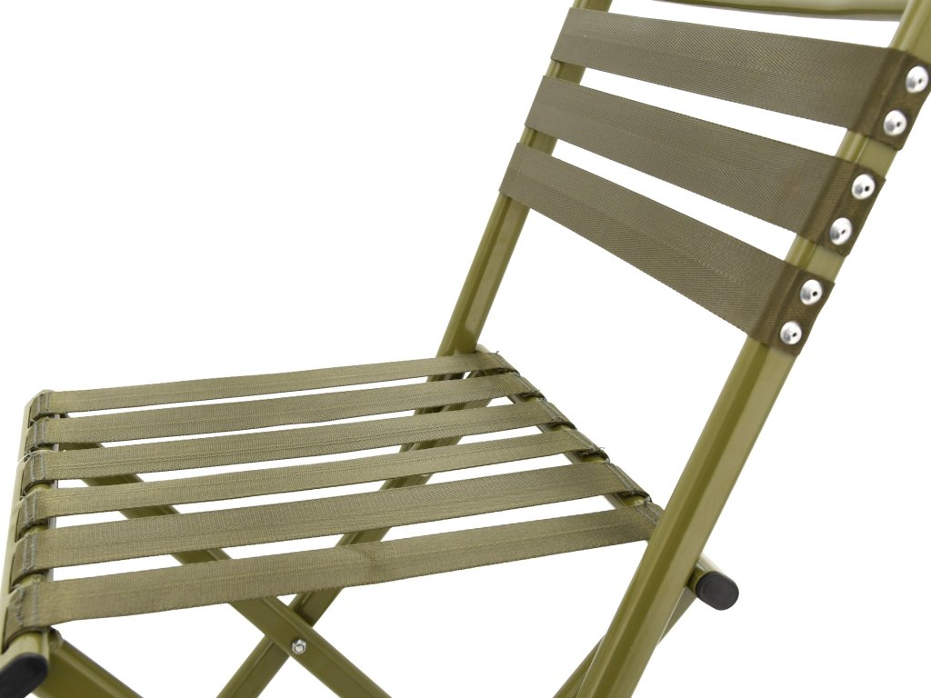 Židle je lehce a rychle složitelná, vybavená dvěma opěrnými nohami a opěradlem. Rozkládá se tahem a napnutím pásů, čímž vznikne pohodlné sedátko a opěradlo.