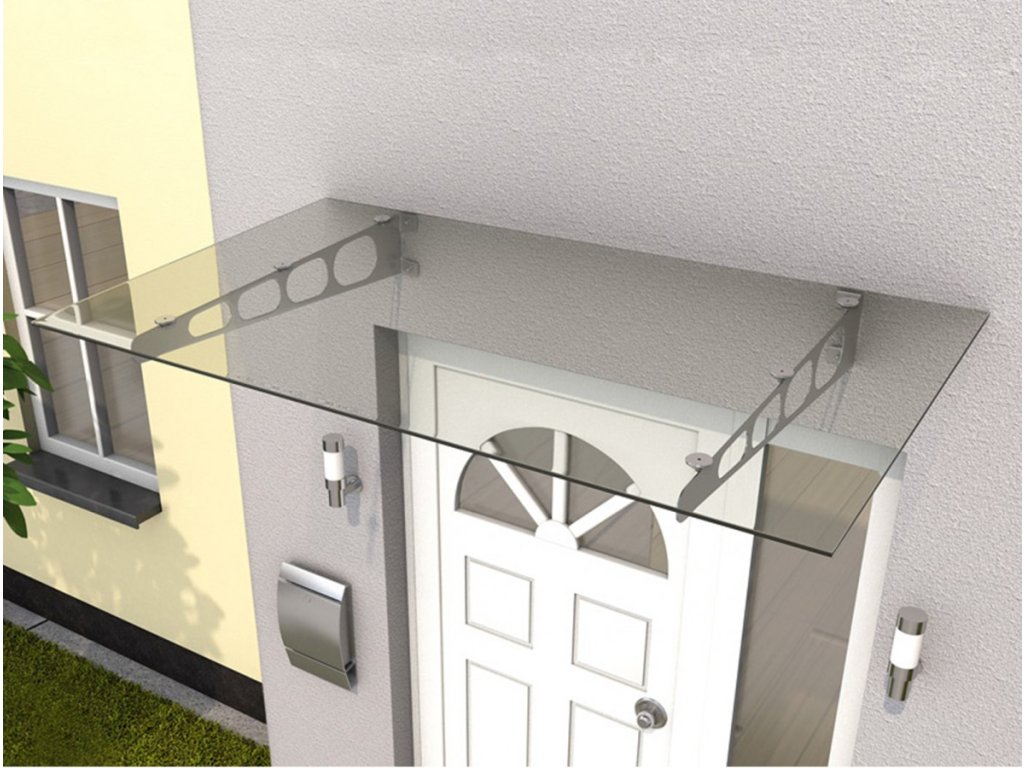 Moderní rovná stříška nad vchodové dveře Guttavordach HD/LT 160 × 90 cm zkrášlí prostor vstupu do vašeho domu a současně je dokonalou ochranou vašich dveří před deštěm, sněhem a větrem. Je vhodná pro zastřešení vchodů, balkonů, výloh obchodů, nebo například pro zastřešení nad bankomaty.