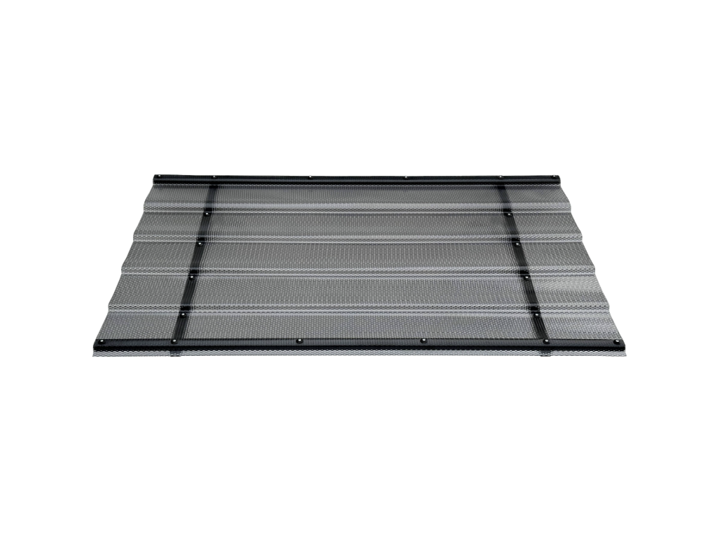 Vchodová stříška má nosnou konstrukci vyrobenou z práškově lakovaného hliníku antracitové barvy RAL 7016 a vyplněna je polykarbonátem s UV filtrem a dekorativním diamantovým povrchem. Stříšku nabízíme v rozměrech - šířka 150 cm × hloubka 95 cm. Hliníková konstrukce perfektně odolává vlivům počasí, i po letech je pevná a stabilní. Polykarbonát v zimě mrazem nekřehne a ani na silném letním slunci nedochází ke změnám barvy.
