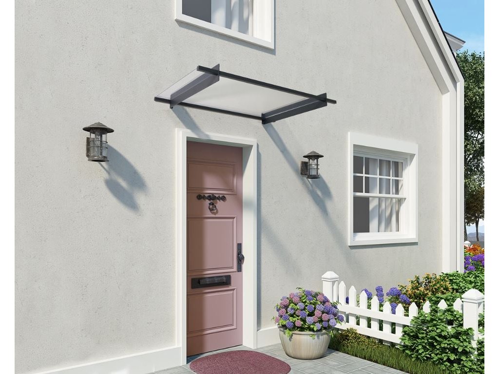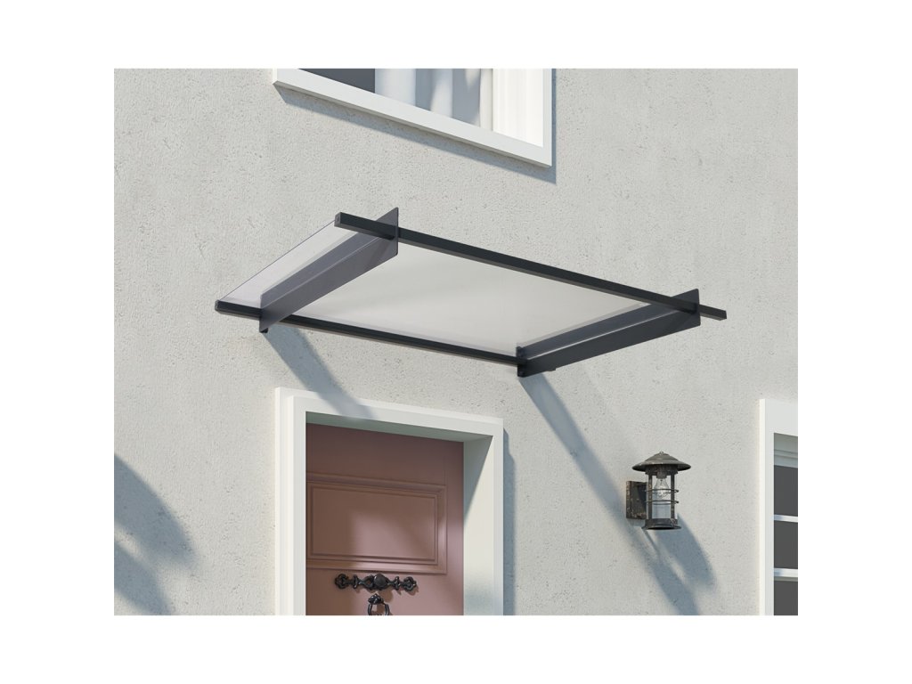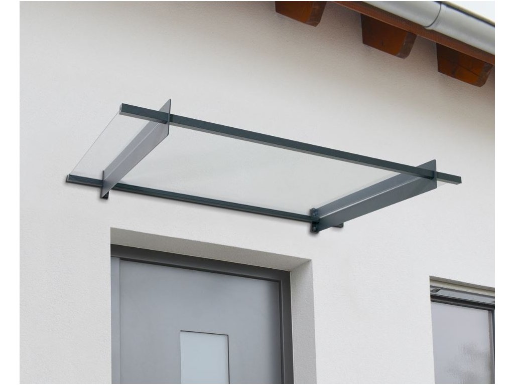 Pultová stříška Nancy 1500, jednoduchá a elegantní vchodová stříška je dokonalou ochranou dveří před deštěm, sněhem a větrem. Lehké zastřešení připravené k samostatné montáži bez potřeby použití dodatečných pomocných podpěr. Odolné nerezové hliníkové profily. Práškově lakované a pozinkované ocelové podpěry. Tvar předního profilu i zadní skryté těsnění zajišťují při dešti odvod vody do bočních stran.