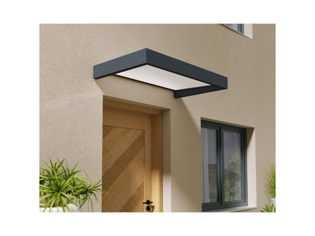 Stříšku nabízíme v rozměrech -160 x 95 x 17 cm a barevné kombinaci - antracitové profily + zasklení čirým polykarbonátem 4 mm.