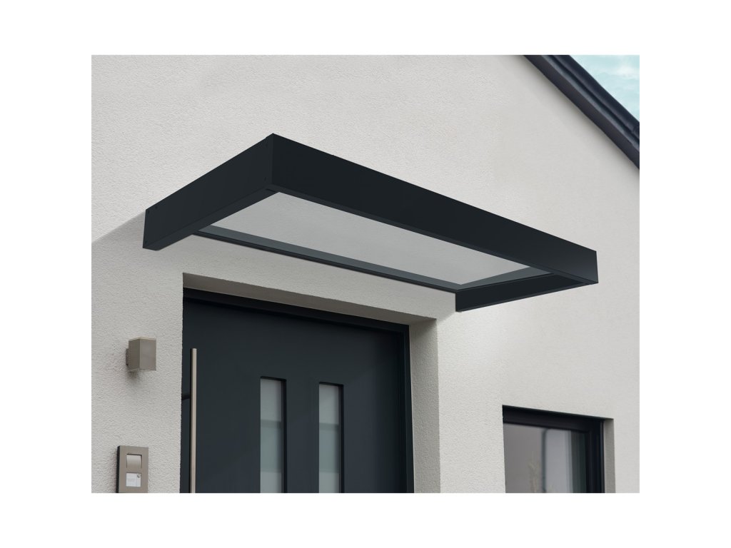 Pultová stříška Sophia 2150, jednoduchá a elegantní vchodová stříška je dokonalou ochranou dveří před deštěm, sněhem a větrem. Lehké zastřešení připravené k samostatné montáži bez potřeby použití dodatečných pomocných podpěr. Odolné nerezové hliníkové profily. Práškově lakované a pozinkované ocelové podpěry. Tvar předního profilu i zadní skryté těsnění zajišťují při dešti odvod vody do bočních stran.