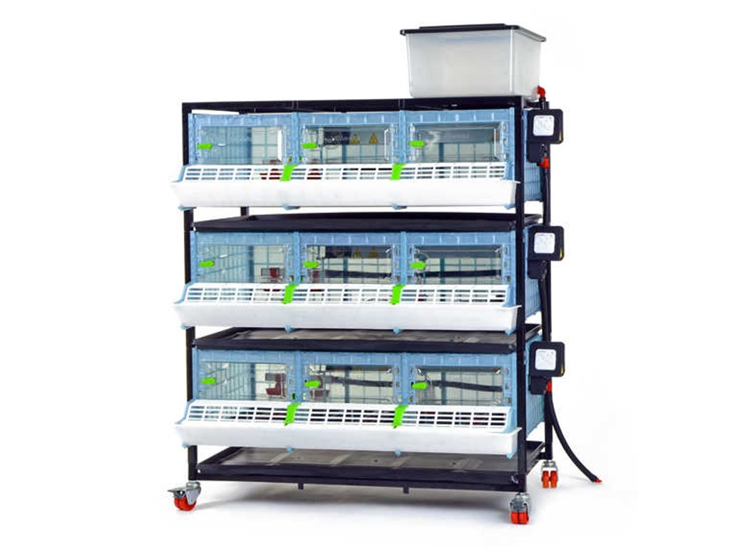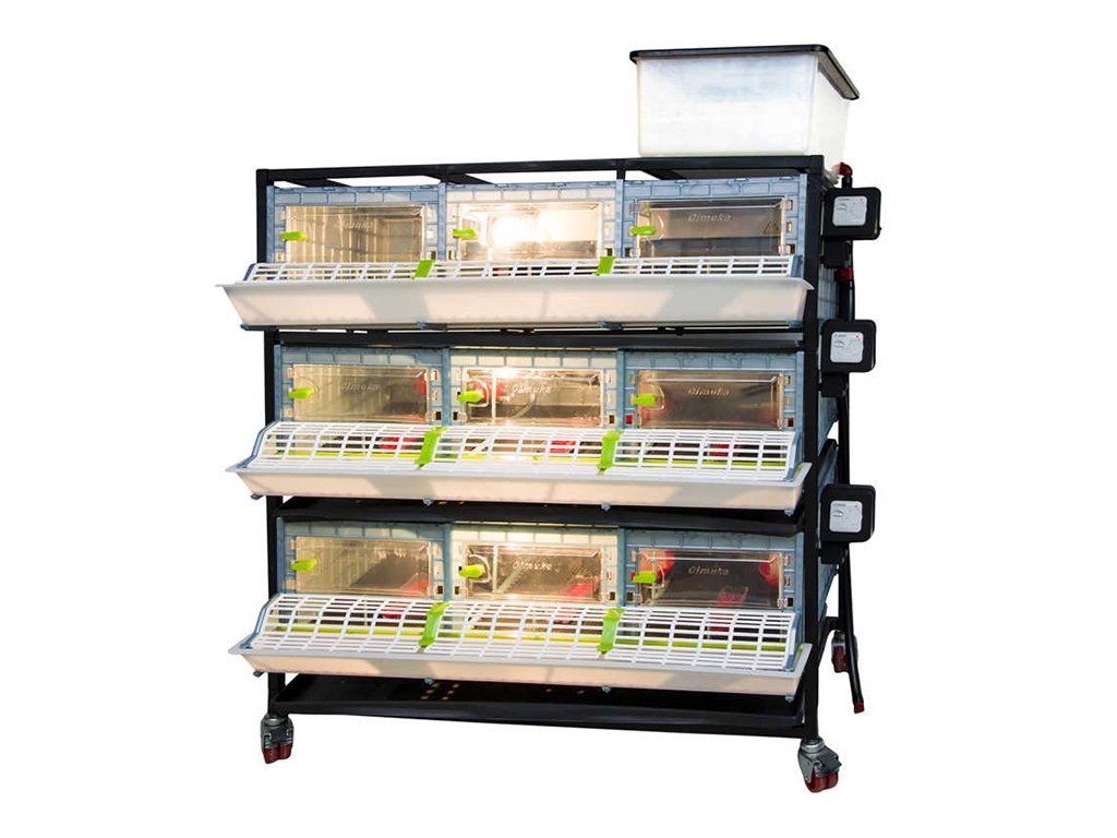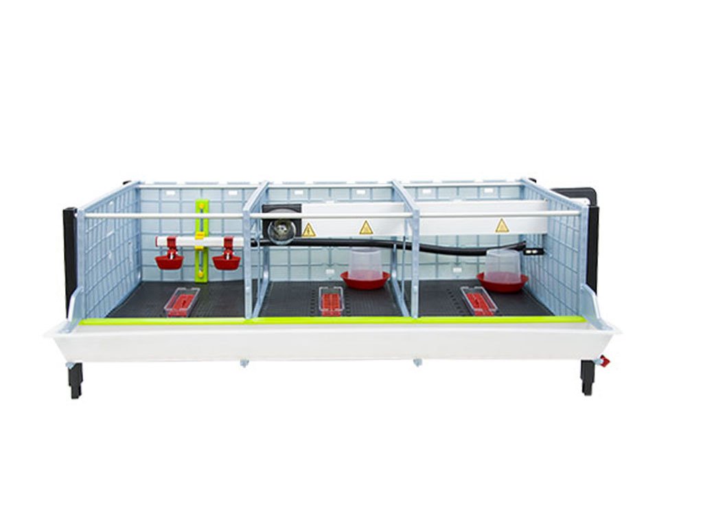 Odchovna drůbeže vhodná k chovu pro 120 až 135ks kuřat s patentovanou technologií Comfortplast o rozměrech 104 x 60 x 132 cm. Jedná se o 3 patrovou klec s 3 oddíly, které jsou vybaveny ohřevnou lištou s nastavitelným termostatem a výstupem na žárovku, krmítky s mřížkou proti plýtvání krmiva, napáječkami s přívodem vody z 20 litrového zásobníku.