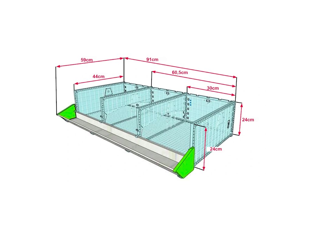 - Výbava: Termostat, 20l nádrž, niplové napáječky, krmítka s mřížkou