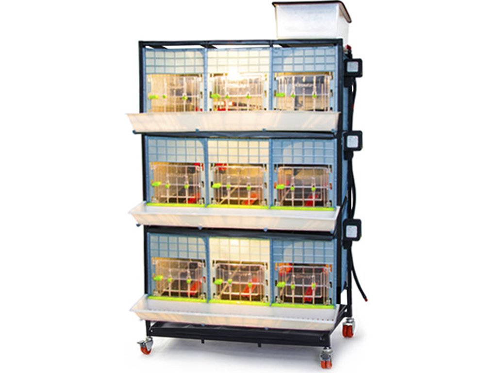 Odchovna drůbeže vhodná k chovu pro 120 až 135ks kuřat s patentovanou technologií Comfortplast o rozměrech 104 x 64 x 173 cm. Jedná se o 3 patrovou klec s 3 oddíly, které jsou vybaveny ohřevnou lištou s nastavitelným termostatem a výstupem na žárovku, krmítky s mřížkou proti plýtvání krmiva, napáječkami s přívodem vody z 20 litrového zásobníku.