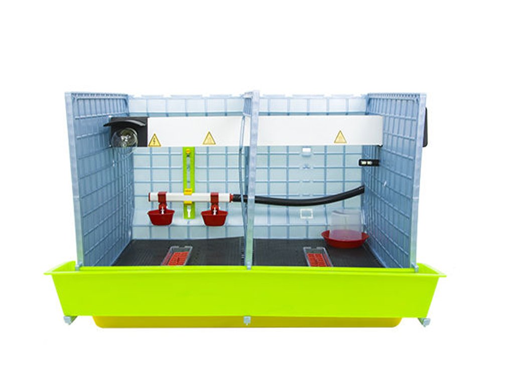 Odchovna drůbeže vhodná k chovu pro 25 až 30ks kuřat s patentovanou technologií Comfortplast o rozměrech 72 x 64 x 63 cm. Jedná se o 1 podlažní klec s 2 oddíly, které jsou vybaveny ohřevnou lištou s nastavitelným termostatem a výstupem na žárovku, krmítky s mřížkou proti plýtvání krmiva, napáječkami s přívodem vody z 4 litrového zásobníku.