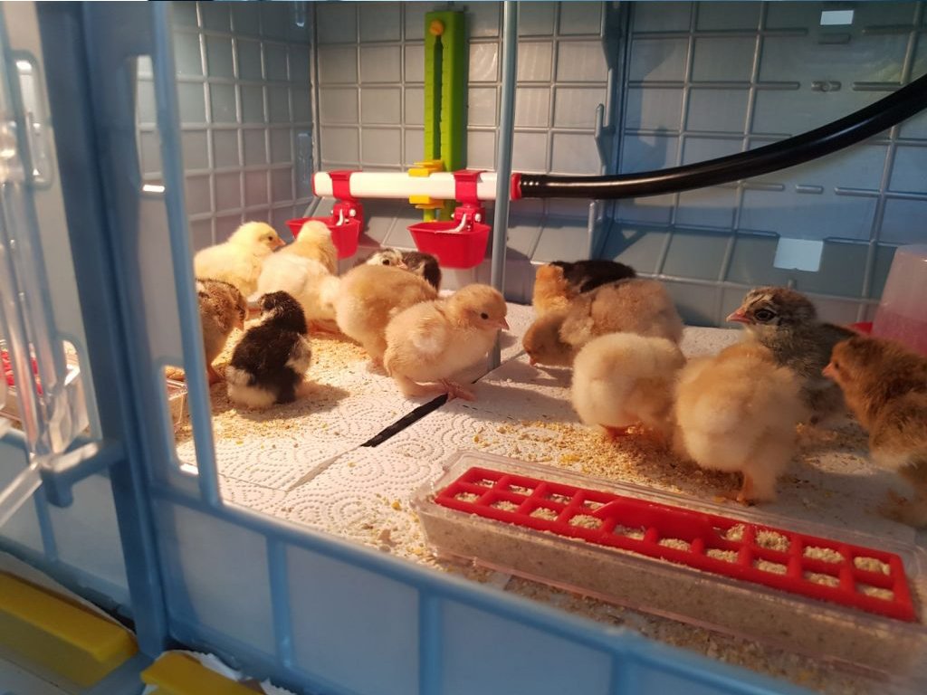 Součástí balení jsou dvě přenosné krmné misky pro první dny života mláďat a odchovna drůbeže je také vybavena závěsným velkokapacitním krmítkem pro zásobu krmení až na 2 dny pro každé mládě. Krmítka jsou vyrobena z kvalitního plastu, odolné proti nárazům a velice snadné k údržbě. Navíc jsou krmítka vybavena speciální mřížkou, která zamezuje mláďatům v rozhrabování krmiva, a tím nedochází k jeho plýtvání. Mřížka je navržena k přiměřenému pohybu při spotřebě krmiva.