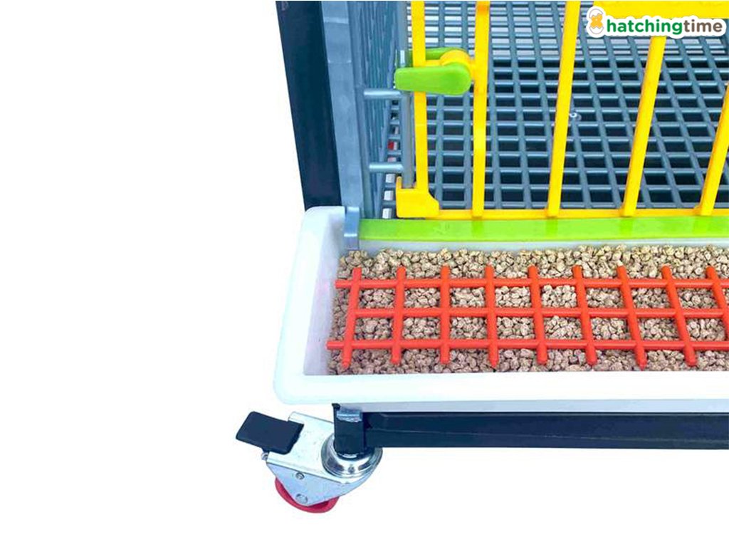 Klec pro odchov kuřat, křepelek a další drůbeže o rozměrech 98 x 60 x 220 cm. Jedná se o 4 patrovou klec, která je vybavena krmítkem s mřížkou proti plýtvání krmiva a napáječkou s přívodem vody z 20 litrového zásobníku. Klece jsou vyrobeny z plastu s vysokou odolností proti trusu i bakteriím - velice snadná údržba klece i trusníku. Snadná manipulace pomocí koleček s brzdou.