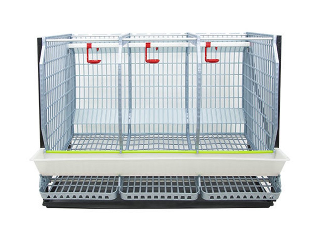 Klec pro chov drůbeže vhodná k chovu 1 až 3 ks slepic s patentovanou technologií Comfortplast o rozměrech 98x67x66 cm. Jedná se o 1 patrovou klec s 3 oddíly, která je vybavena vlastním snáškovým zásobníkem na slepičí vejce, krmítkem s mřížkou proti plýtvání krmiva, napáječkou s přívodem vody bez zásobníku. Klece jsou vyrobeny z plastu s vysokou odolností proti slepičímu trusu i bakteriím - velice snadná údržba klece i trusníku. Klece je možné stohovat do výšky 3 pater.