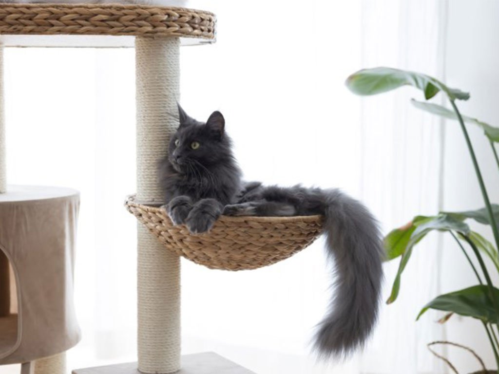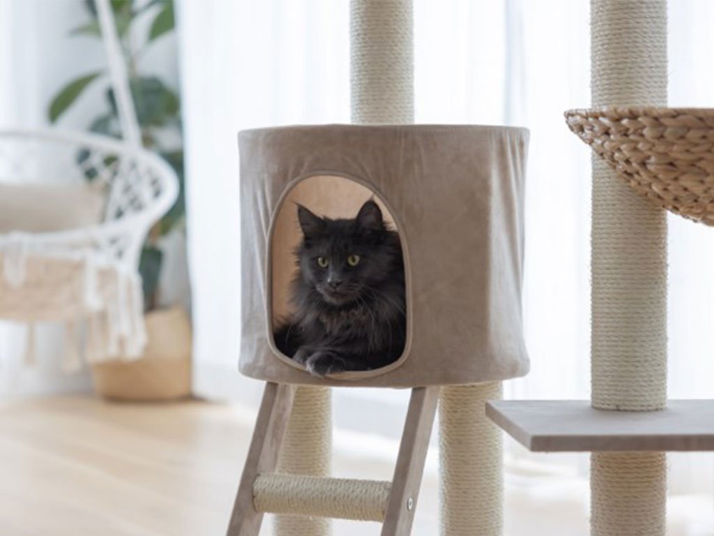 ✓ polstrované lůžko ✓ pelíšek s odnímatelným polštářem ✓ kukaň ✓ schůdky ✓ výklenek ✓ sloupky se sisalem