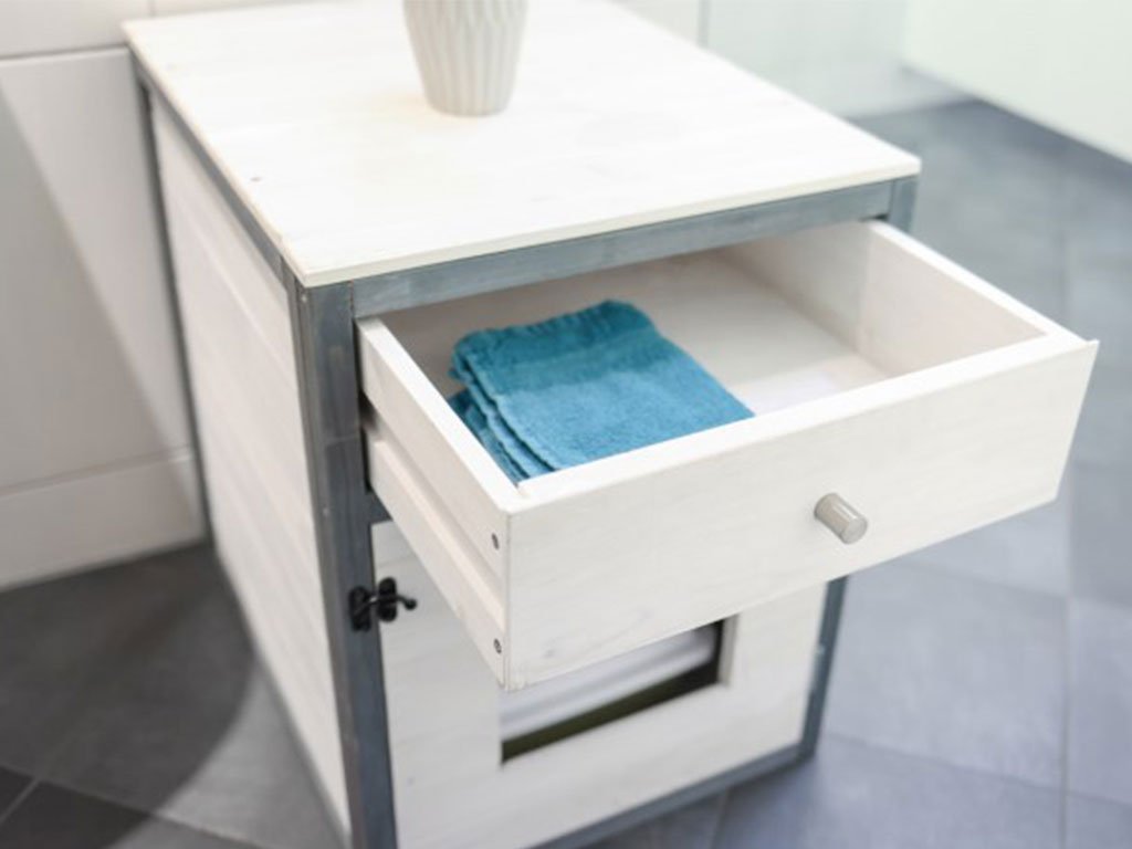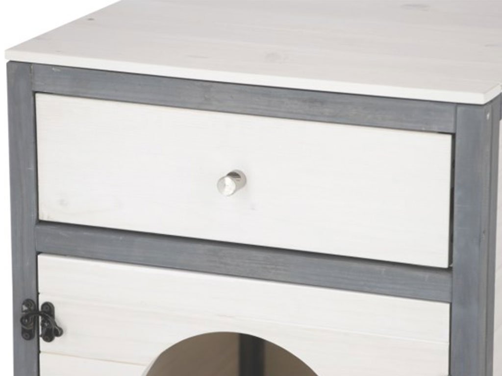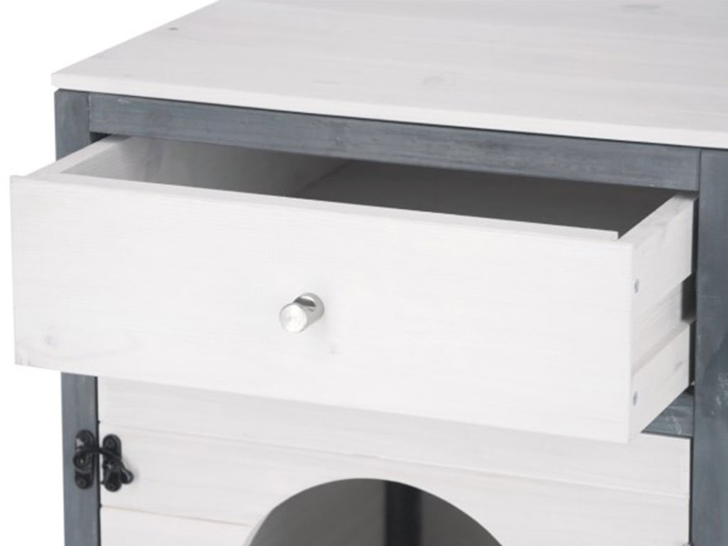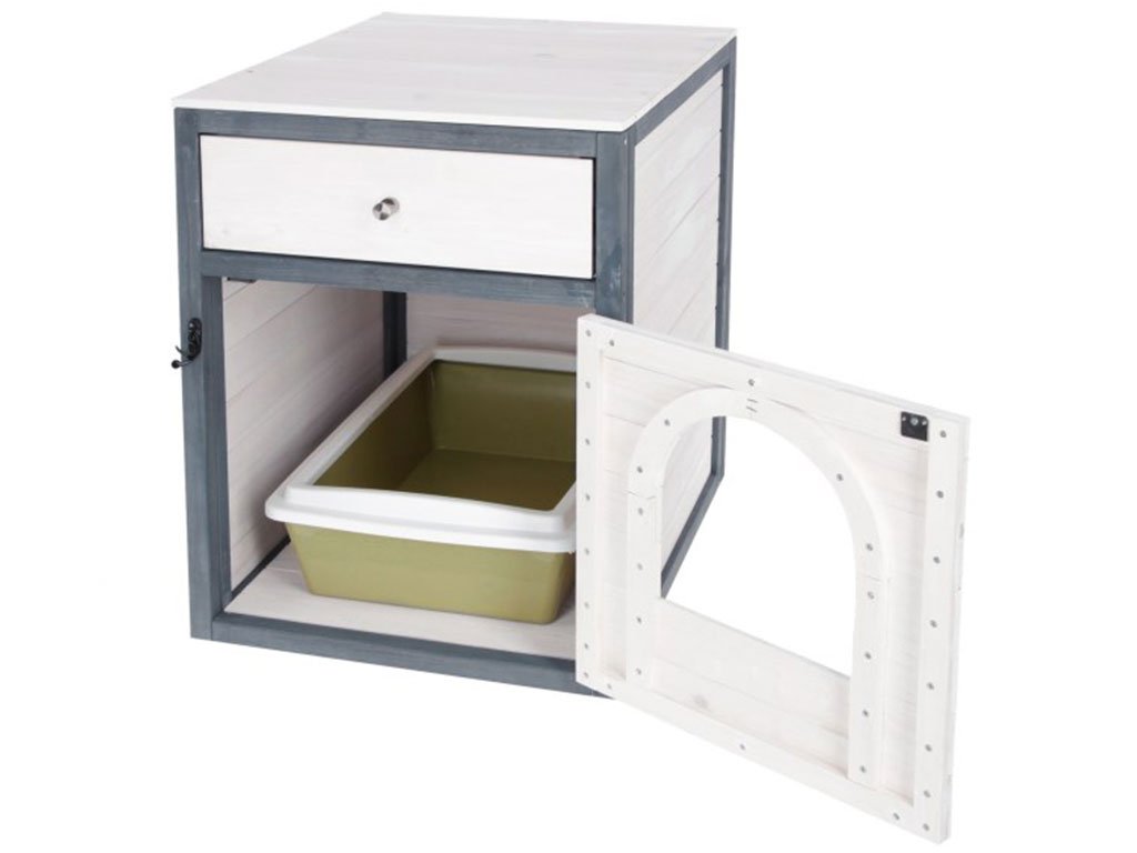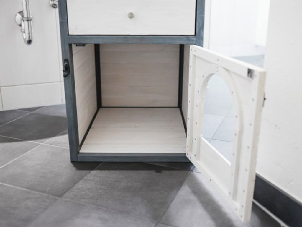 Multifunkční skříňka s dvířky a praktickou zásuvkou pro kočičí toaletu, kukaň, nebo pelíšek. Jedná se o stylový kousek nábytku speciálně vyrobený pro potřeby koček, s ohledem na praktičnost a dizajn. Tato kočičí skříňka představuje nejen skvostný prvek pro interiér, ale pomůže Vám diskrétně zamaskovat kočičí toaletu a efektivně vyřešit ukládání věcí dle potřeb.