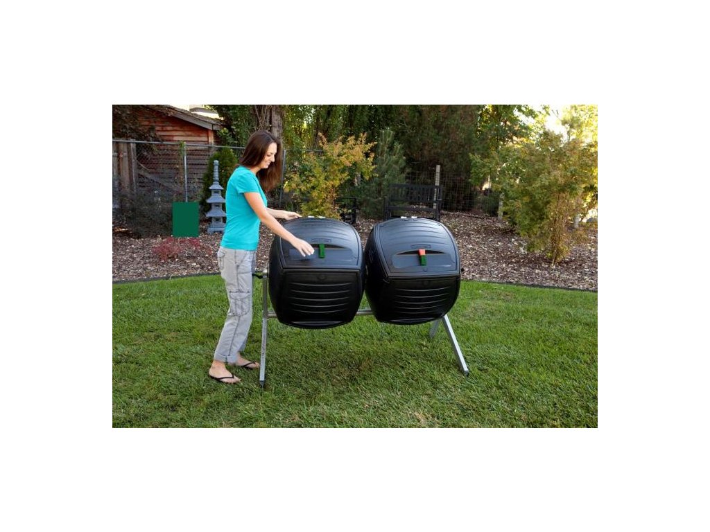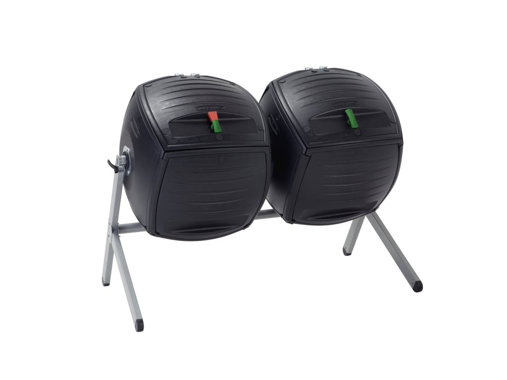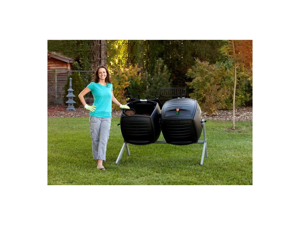 Dvojitý bubnový rotační kompostér LIFETIME 60072 DOUBLE s objemem 380 litrů pro snadné kompostování po celé vaší zahradě. Kompostér má podobu dvou černých válců s dvojitou stěnou s možností rotace na masivní nosné pozinkované konstrukci. Kompostér lze zajistit v určité pozici zarážkou. Dodáváme jako stavebnici - snadná montáž.