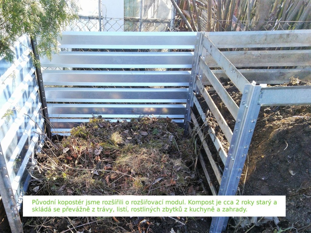 Zásadní předností tohoto kompostéru je také možnost zvětšit jeho objem o rozšiřovací modul. Tento modul se jednoduše připojí ke stávajícímu kompostéru na stejné bázi zasunutí dodatečných příčníků.