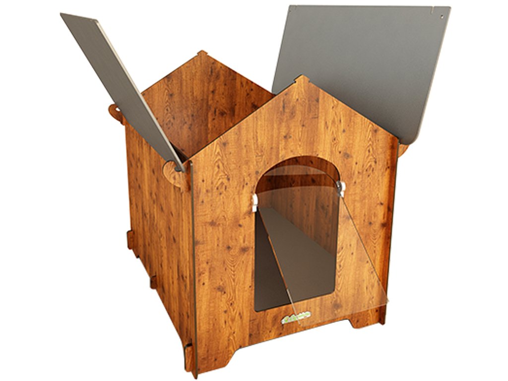 - Bouda vyrobena z HPL laminátu vyžaduje pouze velmi malou údržbu a snadno čistí pomocí otevírací střechy a vyjímatelného dna. Psí boudu můžete jednoduše umýt vodou a čisticími prostředky pro domácnost. Pouze je nutné se vyvarovat kyselin nebo alkalických roztoků, které by mohly poškodit povrch.
