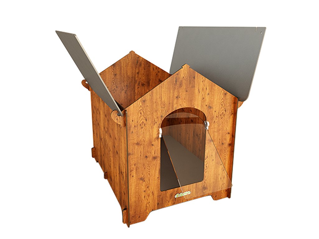 - Bouda vyrobena z HPL laminátu vyžaduje pouze velmi malou údržbu a snadno čistí pomocí otevírací střechy a vyjímatelného dna. Psí boudu můžete jednoduše umýt vodou a čisticími prostředky pro domácnost. Pouze je nutné se vyvarovat kyselin nebo alkalických roztoků, které by mohly poškodit povrch.