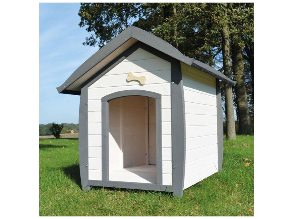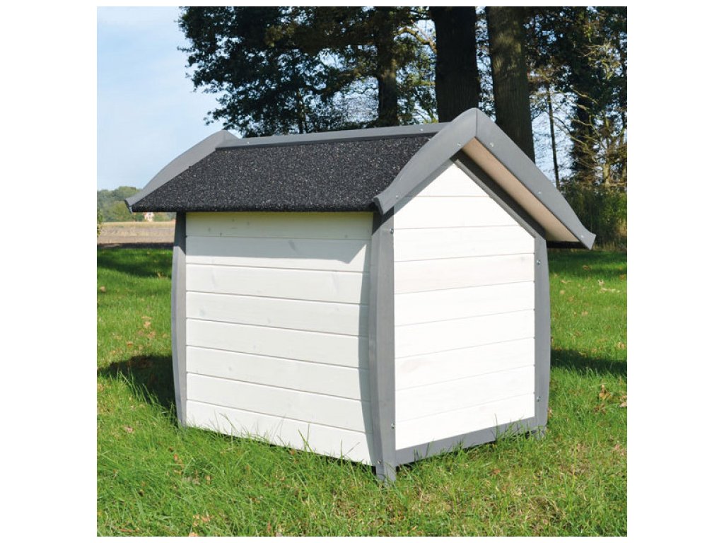 Psí bouda BELLA ve velikosti XL zaujme čistým zpracováním a vynikající kvalitou. Dřevo odolné proti povětrnostním vlivům zaručuje dlouhou životnost. Asfaltové pásy na střeše, které jsou zarovnané a těsné, chrání boudu před deštěm. Dřevěné nožičky zajišťují, že podlaha boudy je chráněna před vlhkostí a chladem, protože materiál neleží přímo na podlaze. Bouda BELLA má zvláště atraktivní design. Je v moderních a stylových barvách s dekorací kosti. Na zahradě, na balkóně a na terase se BELLA rychle stane nezbytným a oblíbeným místem pro vašeho psa.