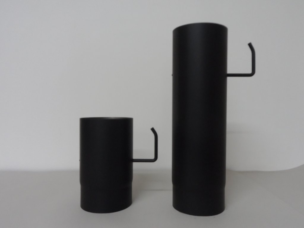 Roura kouřová s klapkou 130 mm/25 cm, silnostěnné 1,5 mm, černá