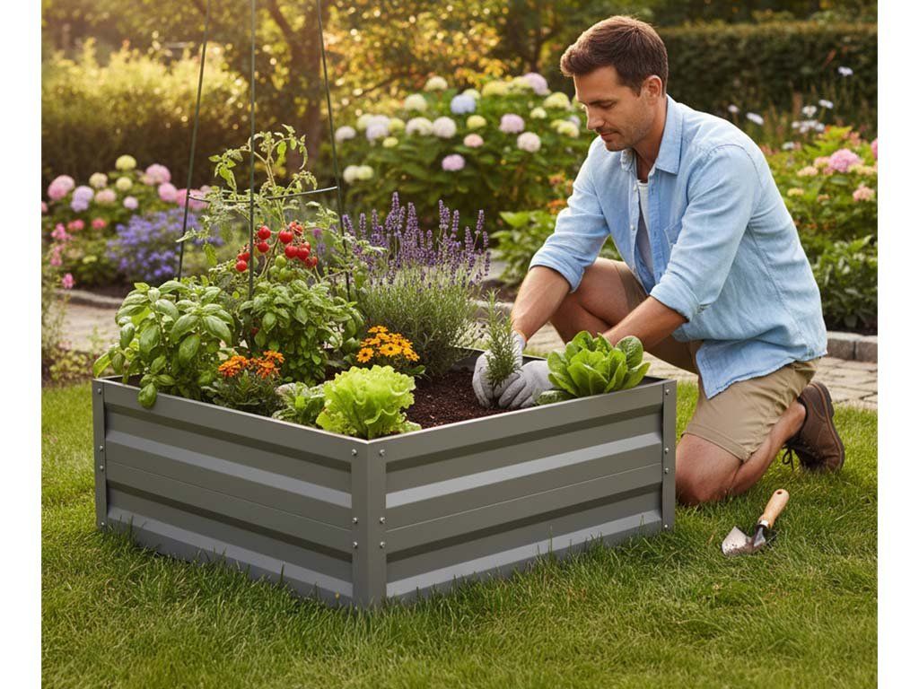 Vyvýšený záhon LEGI 0,65 × 1 m, pozinkovaný ocelový rám, výška 40 cm, antracit