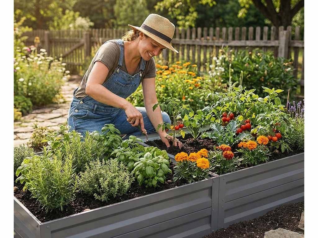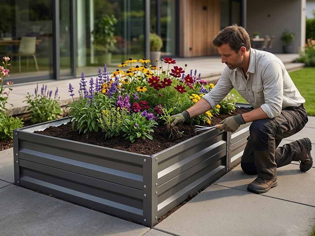 Vyvýšený záhon 1 × 2 m z pozinkovaného profilu s výškou 40 cm chrání rostliny před...
