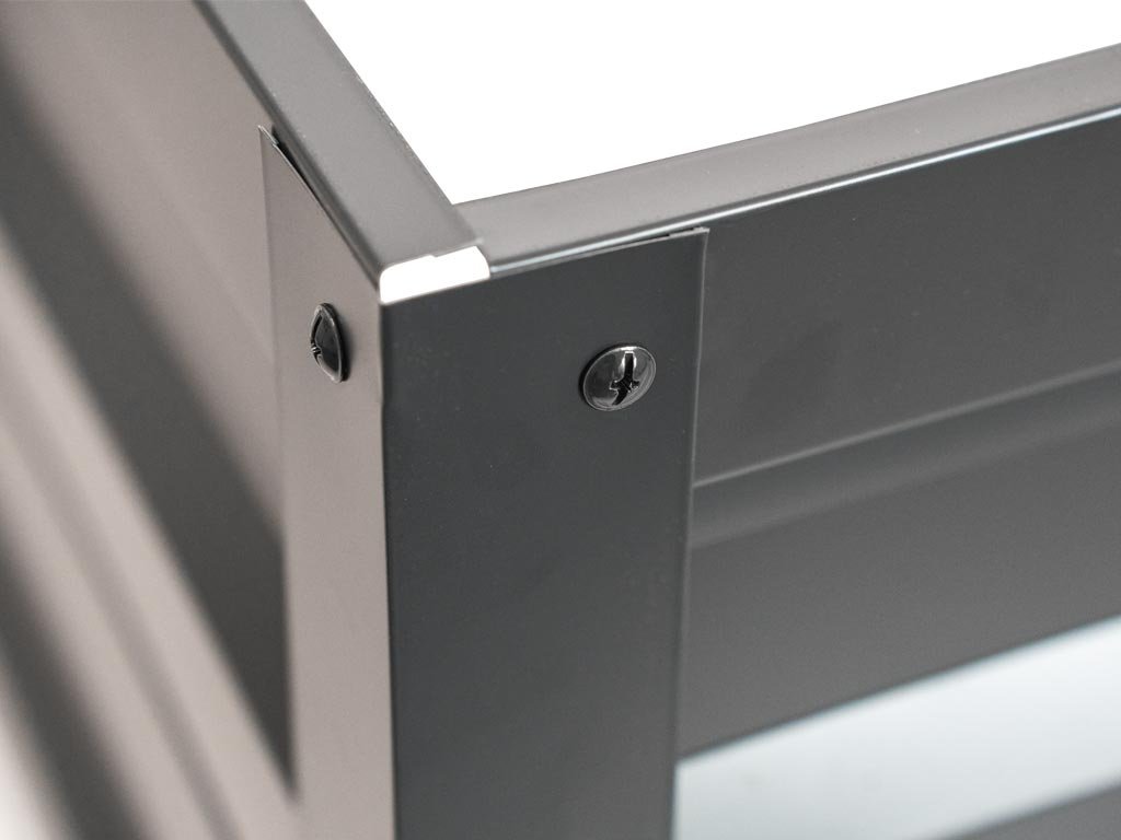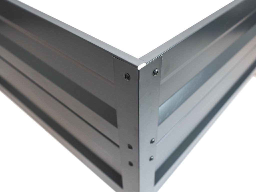 Rám záhonu je vyroben z pozinkovaného profilu, což zajišťuje odolnost proti korozi a dlouhou životnost. Každá stěna je tvořena 2 profily a všechny ostré hrany jsou zarolované, takže nehrozí poranění při manipulaci