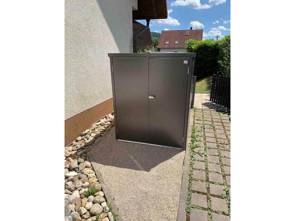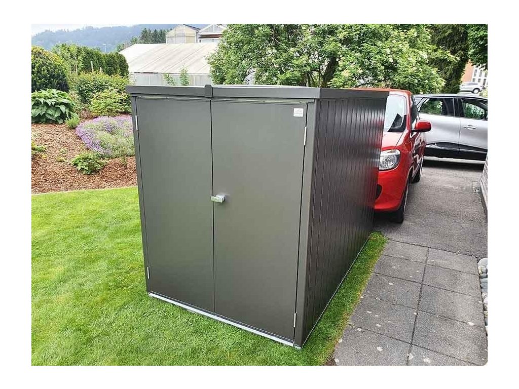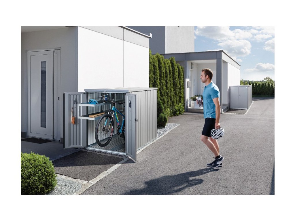 Rádi sportujete, jezdíte na kole? Nemáte dostatek prostoru a potřebujete uklidit vaše kola a sportovní náčiní a chcete je mít pod střechou a bezpečně pod zámkem? Pořiďte si praktickou a velmi užitečnou minigaráž Biohort prémiové kvality, která vyhovuje i nárokům moderní architektury. Minigaráž je široká 145 cm (přední strana s dveřmi), 203 cm hluboká a 173 cm vysoká. Okamžité řešení, které nepodléhá stavebnímu povolení. Minigaráž Biohort nabízíme také v barevném provedení stříbrná metalíza.